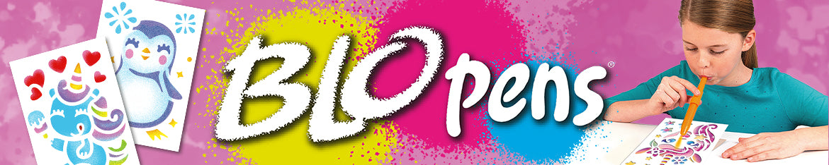 Discover a new way to colour with BLOPENS. Create pictures with cool airbrush effects, that bring your creativity to life! Simply blow through the pen to create stunning spray effects, perfect for filling in stencils or crafting your own vibrant designs. It’s fun endlessly creative, making BLOPENS a huge hit with creative kids and a win for parents.