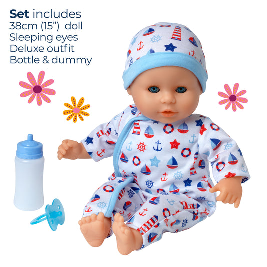 Dolls World Little Treasure - 38cm Soft Bean Bodied White Boy Doll - For ages 18 months+