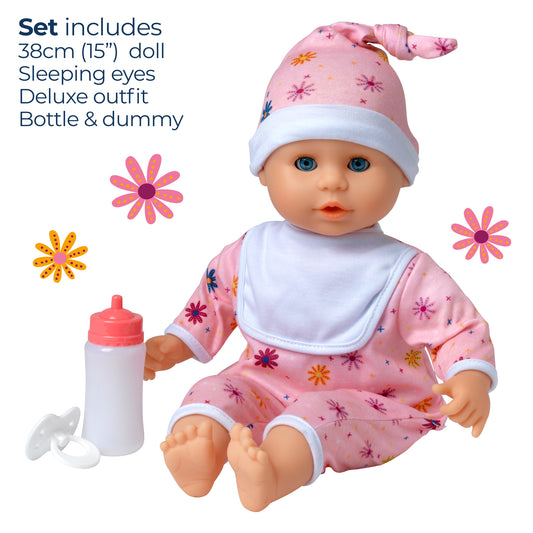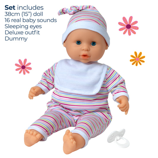 Dolls World Baby Babble 38cm Soft Bodied Doll With 16 Sounds - For ages 18 months+