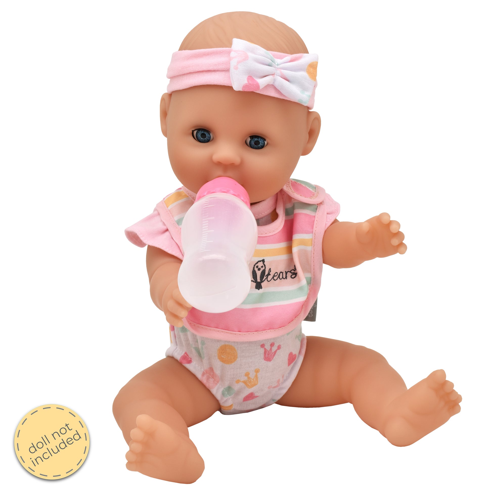 Complete Set – Includes two pretend feeding bottles and a dummy.